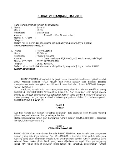 Contoh Surat Jual Beli Rumah Dan Informasi Yang Harus Dicatat